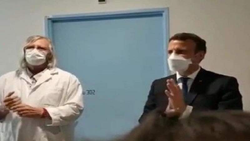فريق البحث العلمي حول إيجاد دواء وطعم للكورونا مع البروفسور الفرنسي راؤولت في فرنسا في مدينة مارسيه انظروا إلى ردة فعل الرئيس الفرنسي ماكرون عندما عرف ان أغلب اعضاء الفريق هم من لبنان والدول العربية.