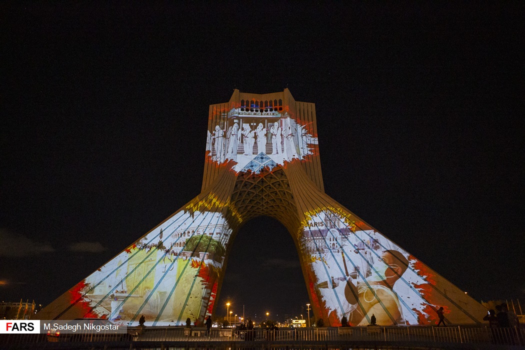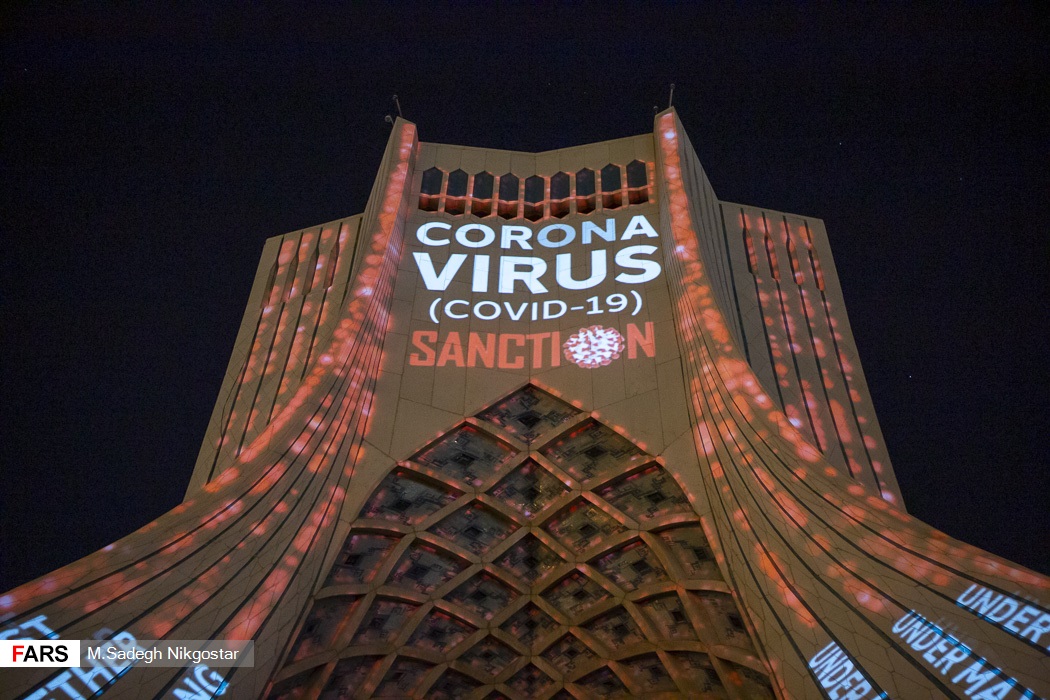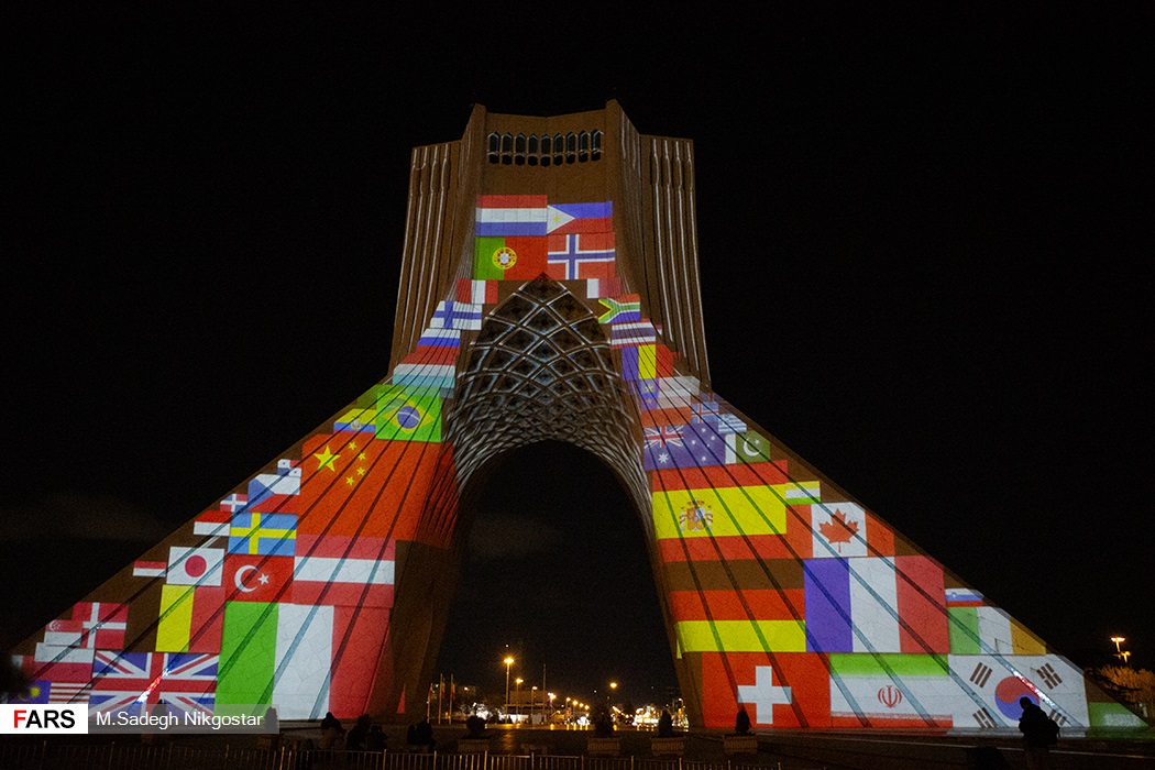 اتشح برج الحرية وسط العاصمة الإيرانية طهران، ليل أمس، بأعلام عدد من البلدان التي وقعت ضحية لفيروس كورونا المستجد.